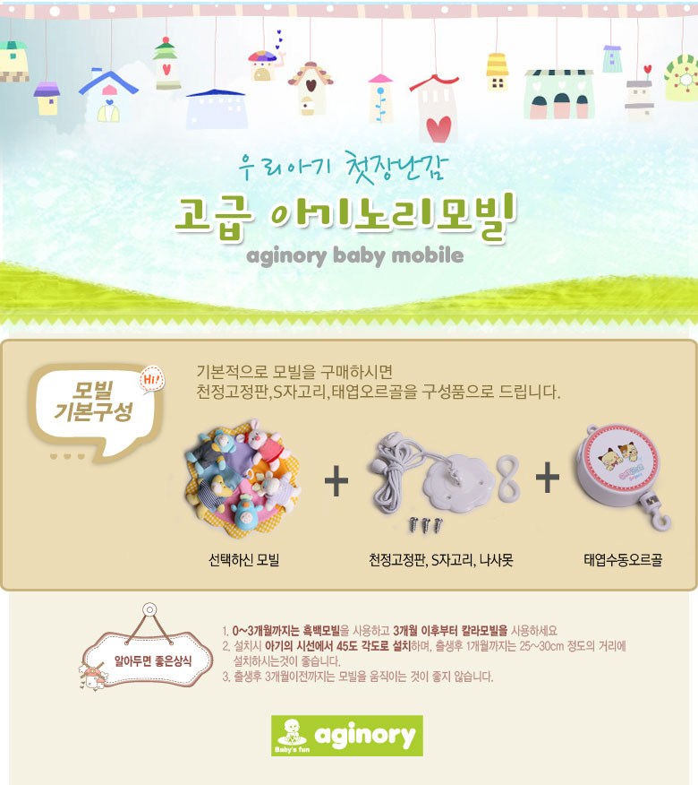 | 품명 및 모델명 | 아기노리 큐띠쁘띠 흑백모빌 + 천정고정판 + S자 고리 + 태엽 오르골 |
