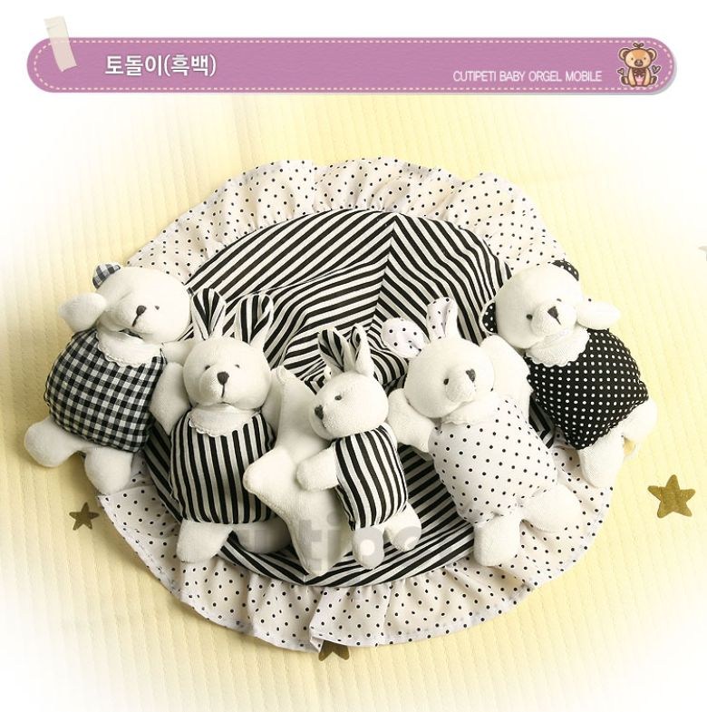 아기노리 큐띠쁘띠 흑백모빌 + 천정고정판 + S자 고리 + 태엽 오르골, 토돌이