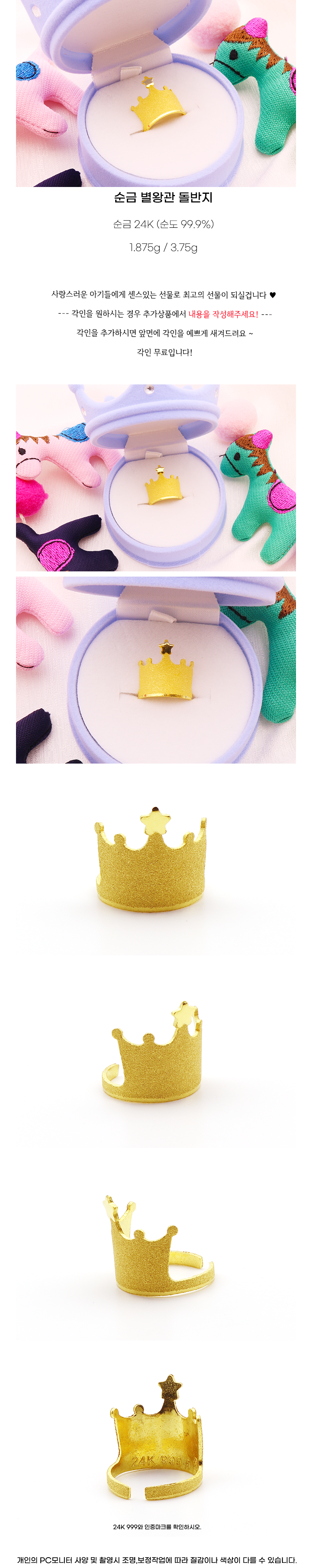 아리골드 순금 별왕관 각인 돌반지 1.875g3.75g
