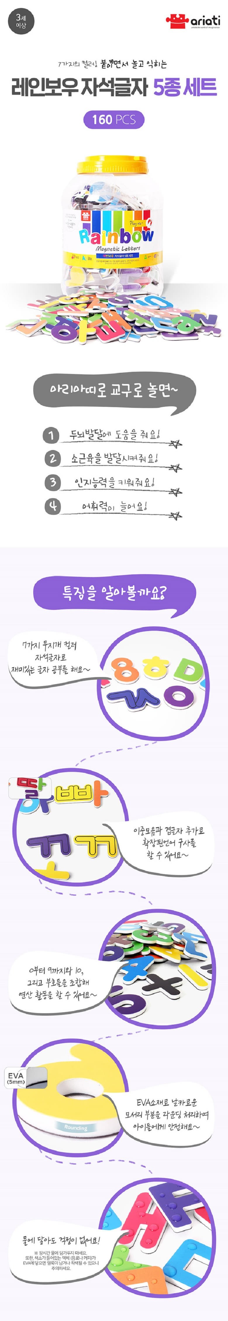 아리아띠 레인보우 자석글자 퍼즐 한글 영어 숫자 5종 세트, 1세트