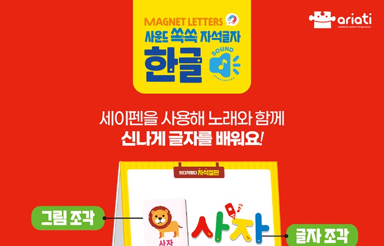 아리아띠 사운드 쏙쏙 자석글자 학습보드 한글, 혼합색상