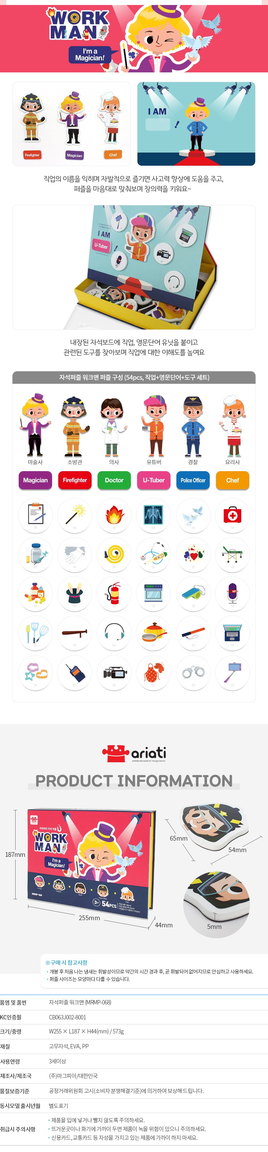 아리아띠 세조각 자석퍼즐 워크맨, 1세트, 54피스