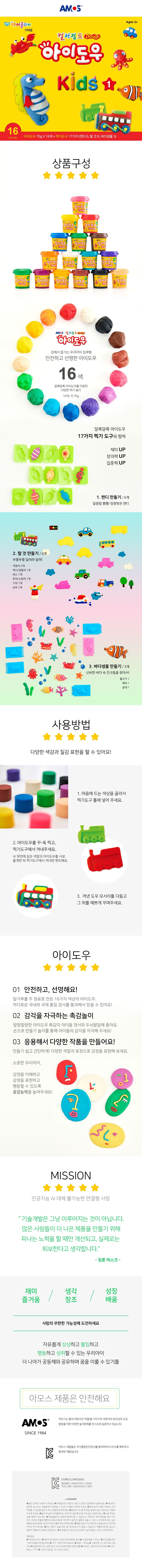 아모스 아이도우 키즈 1 컬러점토 16색 + 찍기틀 17종, 혼합색상, 1세트