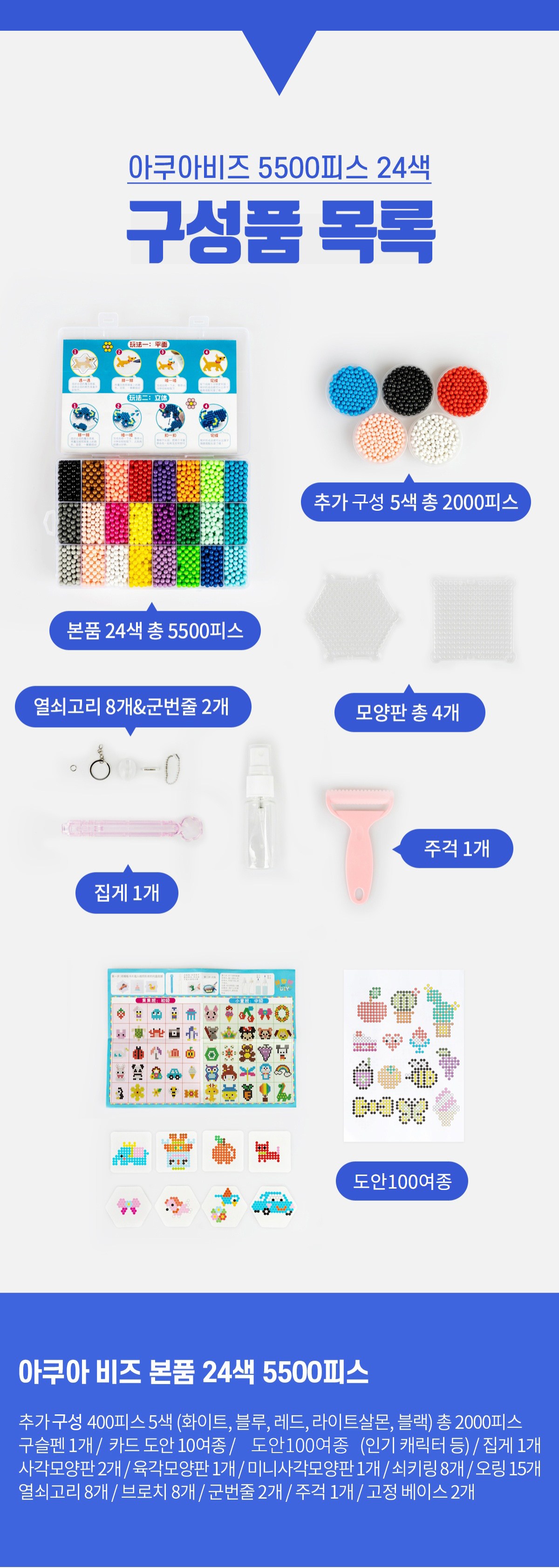 아쿠아비즈 비즈알 29종 + 부자재 + 도안 100종 세트, 혼합색상, 1세트