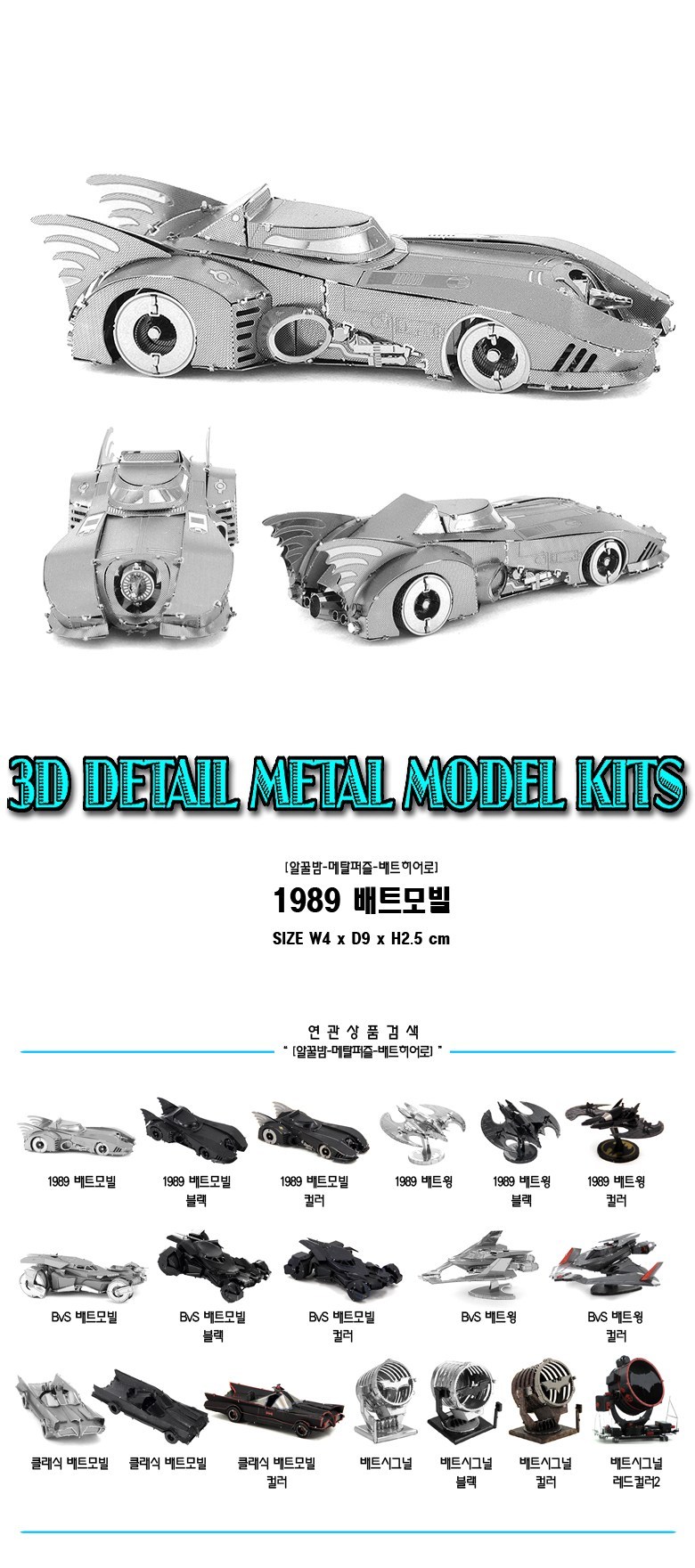 알꿀밤 배트히어로 1989 배트모빌 메탈퍼즐, 실버, 1팩