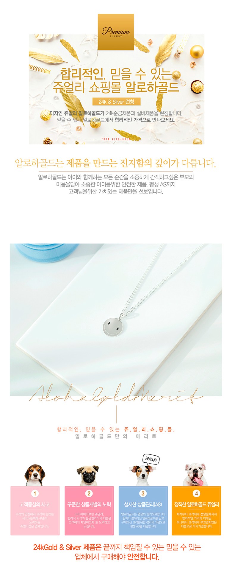 [알로하골드] 실버 심플스마일 미아방지 목걸이
