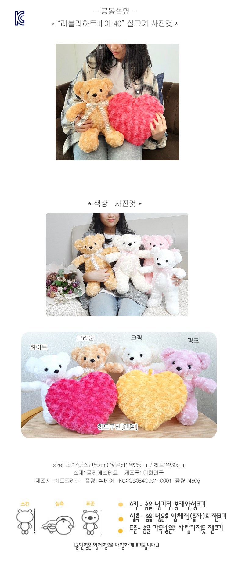 | 품명 및 모델명 | 애착곰/러블리하트베어40/귀요미곰돌이와예쁜하트쿠션구성/내마음을전하는곰돌이 |