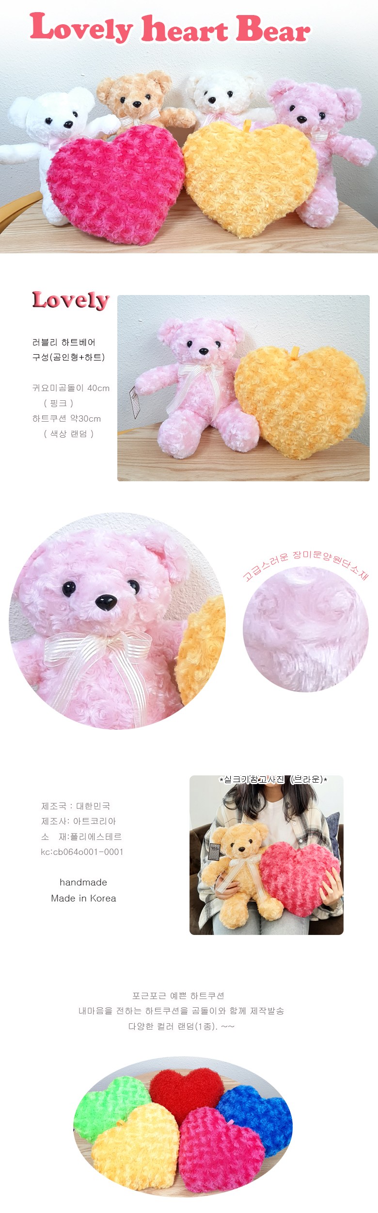 애착곰/러블리하트베어40/귀요미곰돌이와예쁜하트쿠션구성/내마음을전하는곰돌이, 핑크곰(하트랜덤)