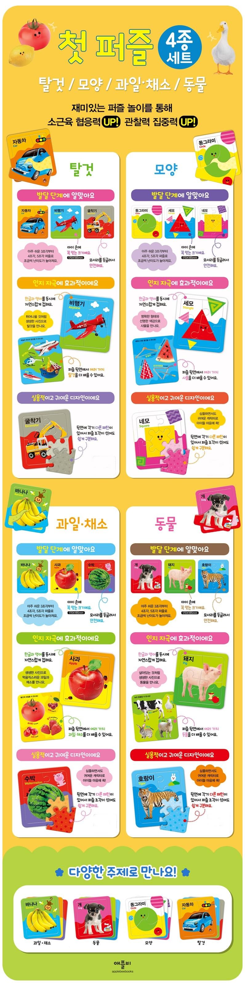 | 품명 및 모델명 | 애플비 첫 퍼즐 동물 + 탈것 + 모양 + 과일 세트 |