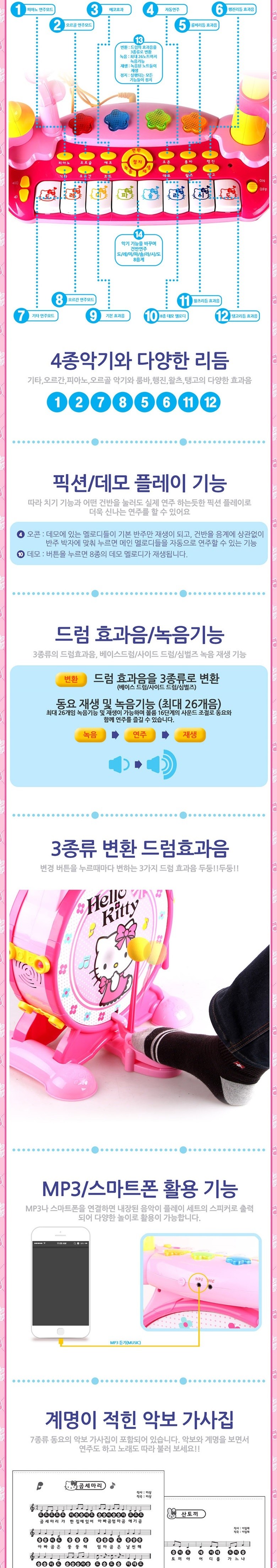 야야 뮤직플레이세트 피아노+전자드럼+노래방 헬로키티, 혼합색상