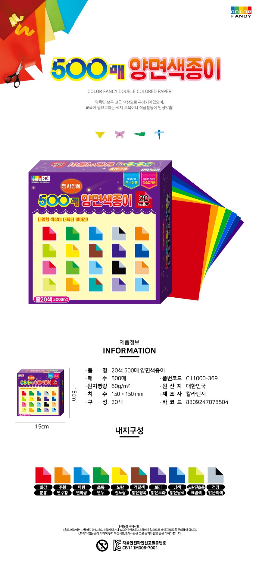 | 품명 및 모델명 | 양면 색종이 보라 500p 20색 3개 |