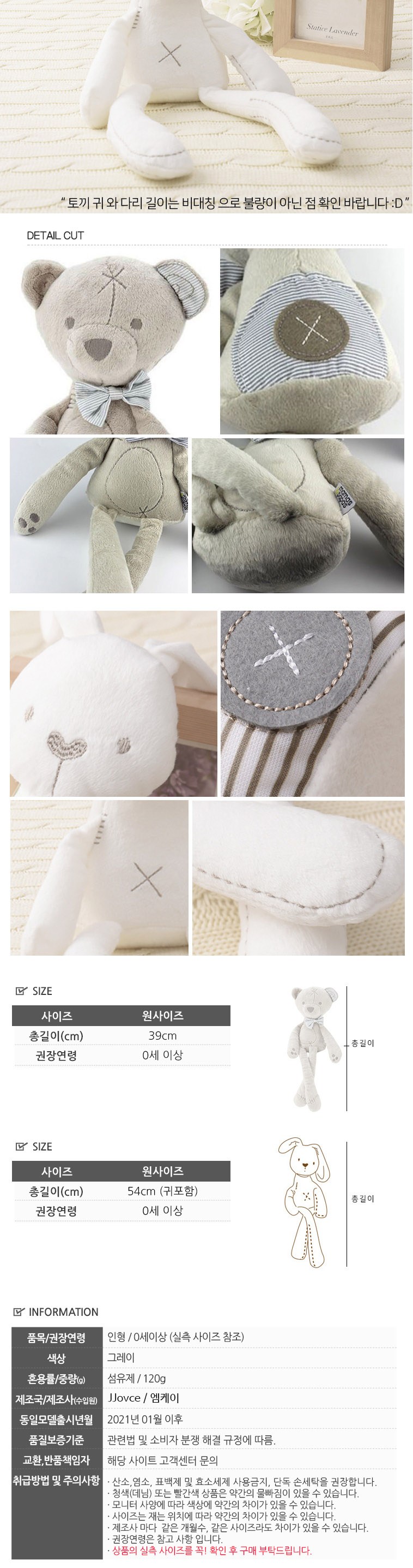 | 품명 및 모델명 | 엠케이 애착인형 래빗 + 곰돌이 세트 곰돌이(39cm), 래빗(54cm) |
