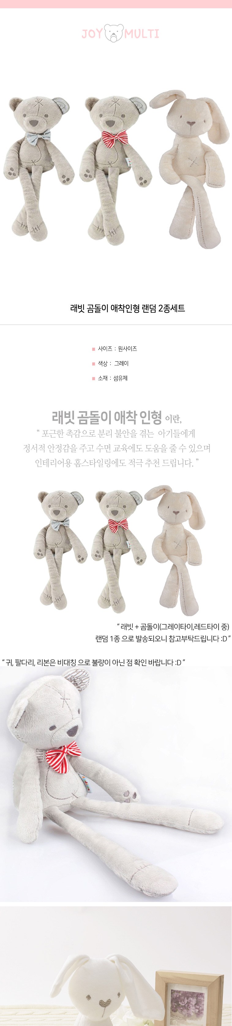 엠케이 애착인형 래빗 + 곰돌이 세트, 그레이 랜덤발송(곰돌이)