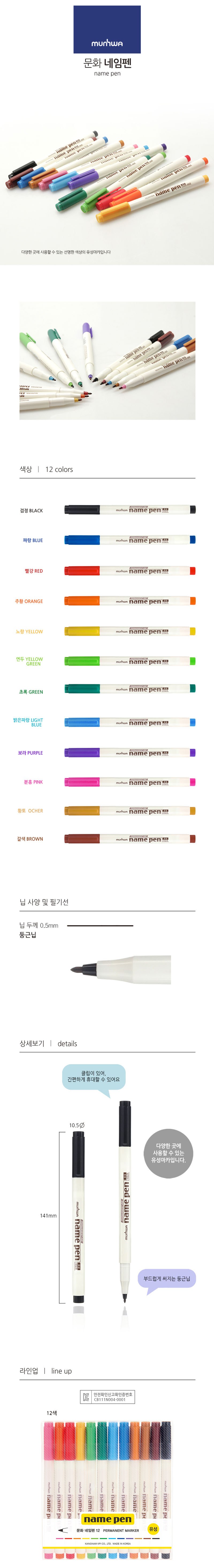 요고모지 네임펜 12색 0.5mm, 혼합색상, 1세트