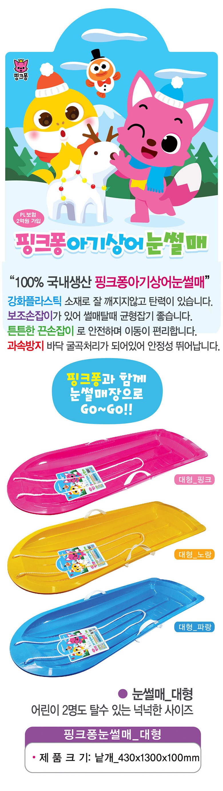 | 품명 및 모델명 | 요술램프 핑크퐁아기상어 눈썰매 2인용 파랑 |