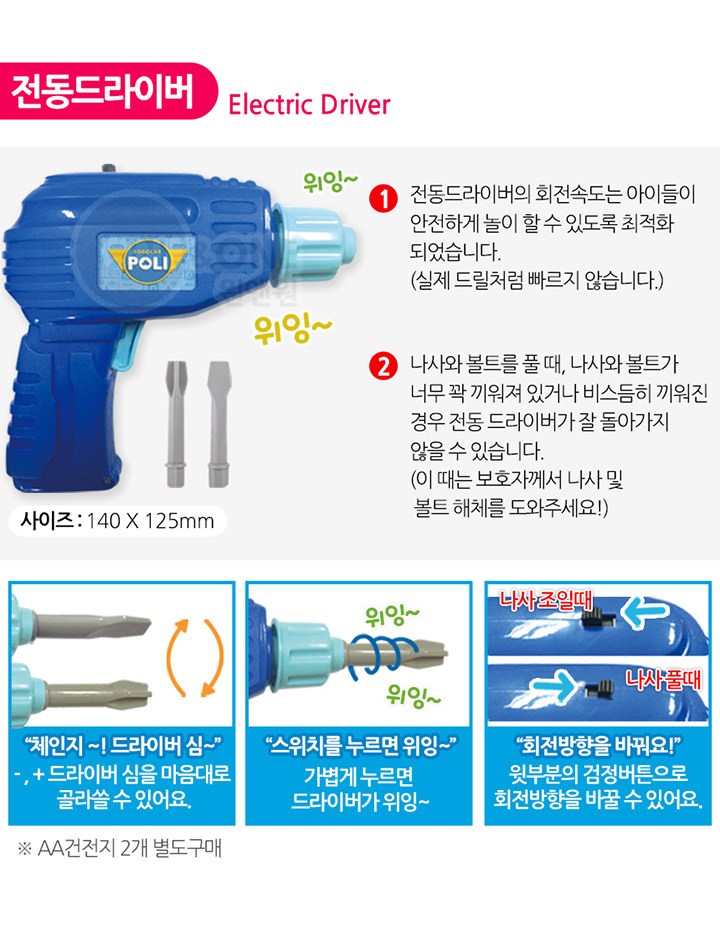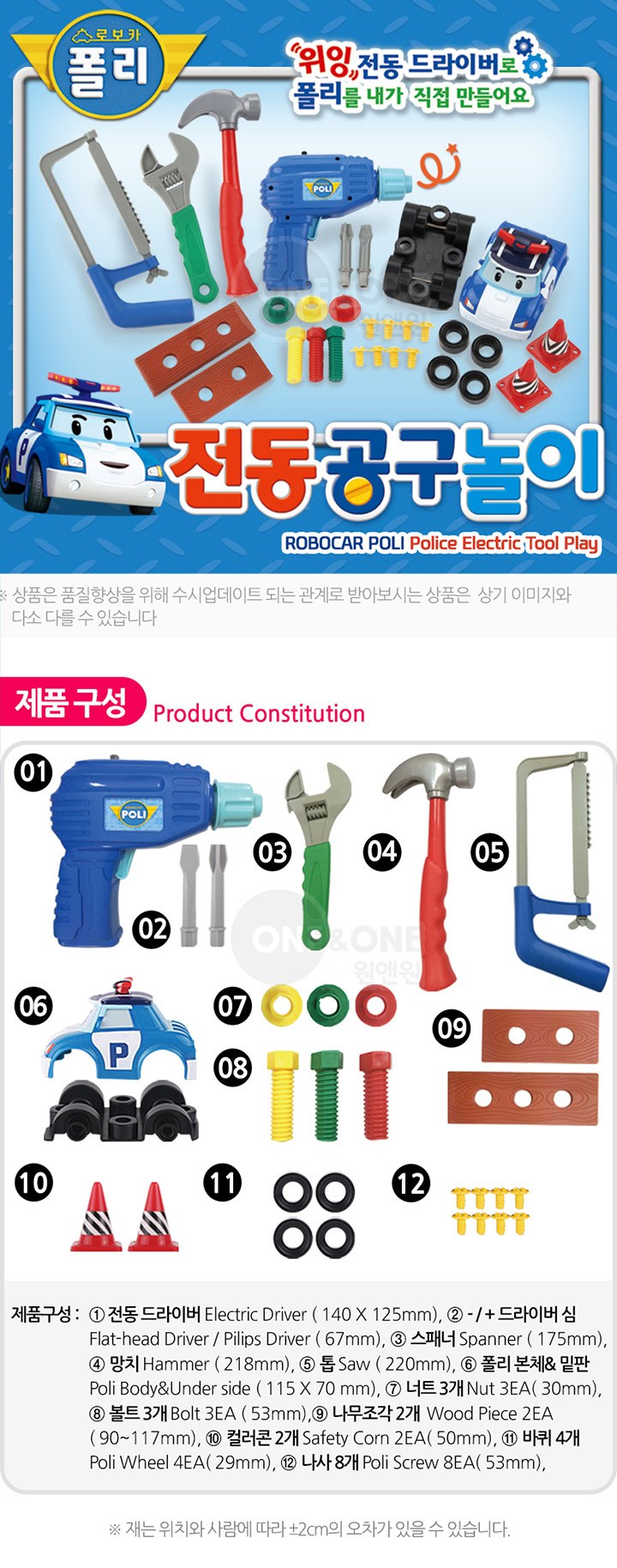 원앤원 로보카폴리 전동 공구놀이, 혼합 색상