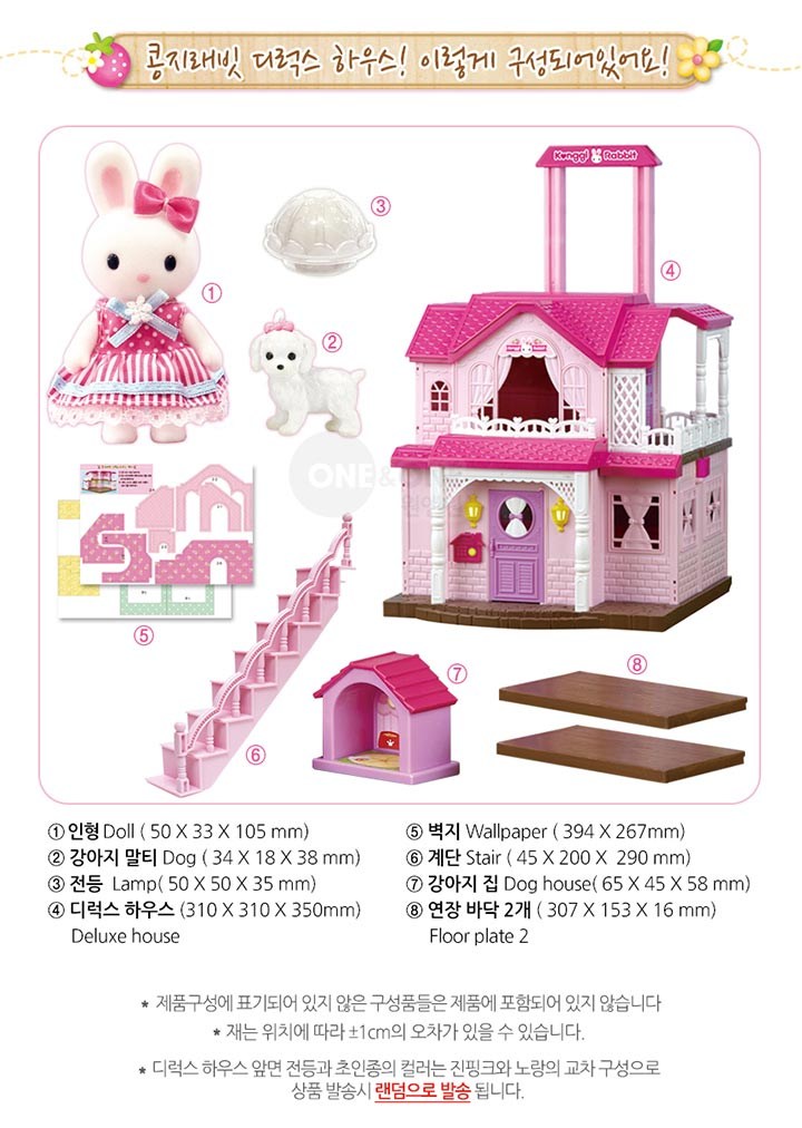 원앤원 콩지래빗 디럭스 하우스 인형집, 혼합 색상