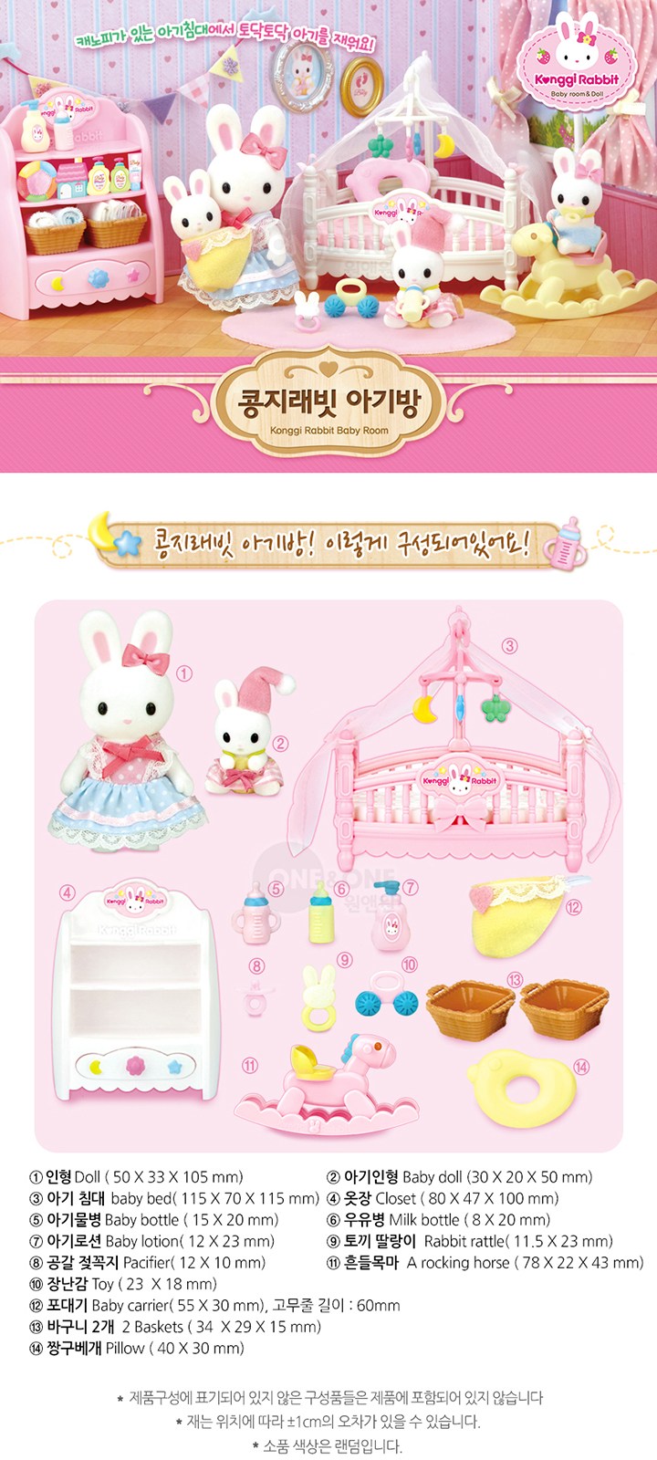 원앤원 콩지래빗 아기방 인형놀이, 혼합 색상