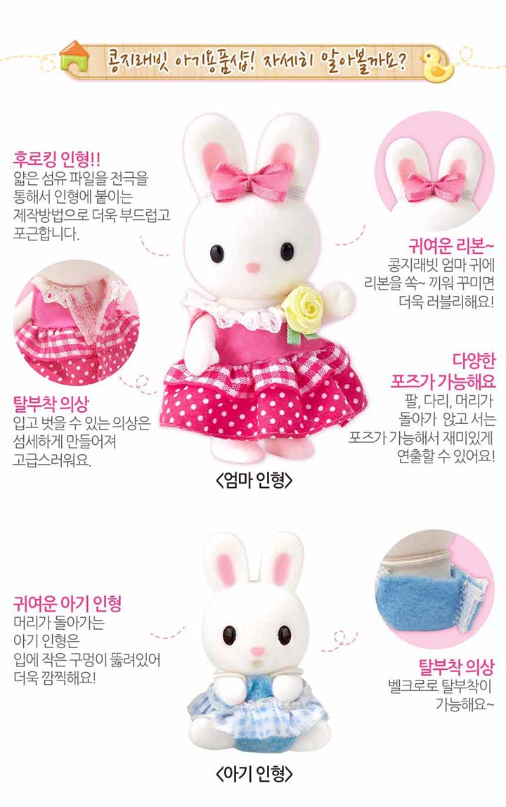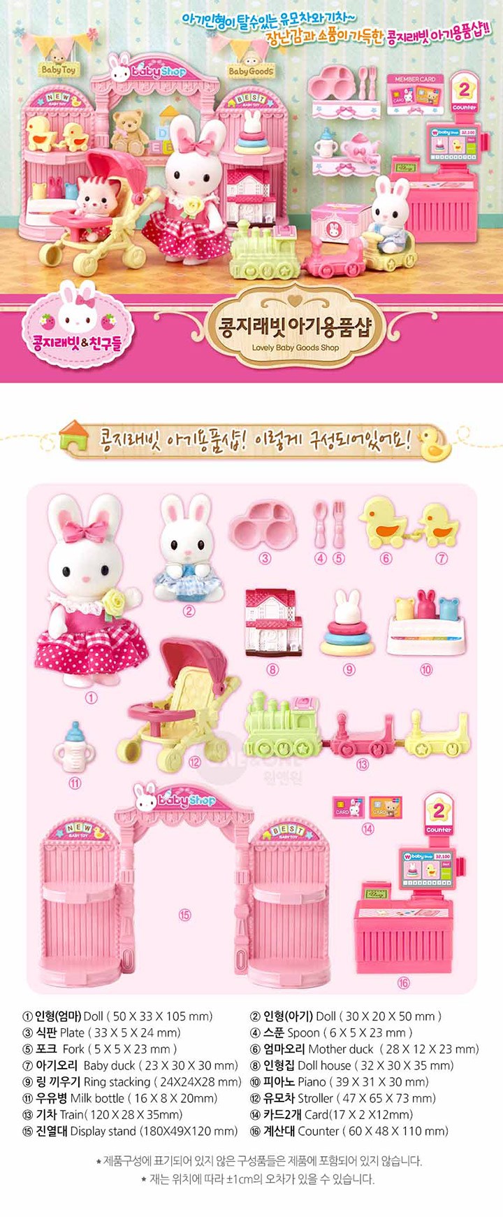 원앤원 콩지래빗 아기용품샵 인형놀이, 혼합 색상