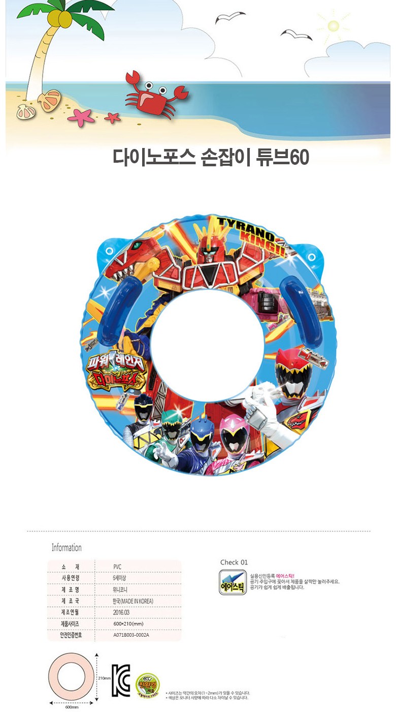 위니코니 다이노포스손잡이튜브60 원형튜브 워터파크 물놀이용품, 16다이노포스손잡이튜브60