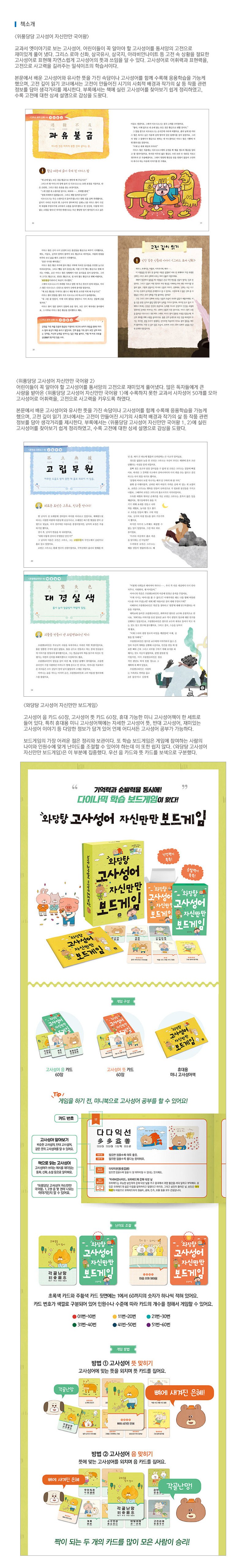 | 목차 또는 책소개(아동용 학습 교재의 경우 사용연령을 포함) | 고사성어 세트(위풍당당고사성어 자신만만국어왕1+국어왕2+고사성어보드게임) |
