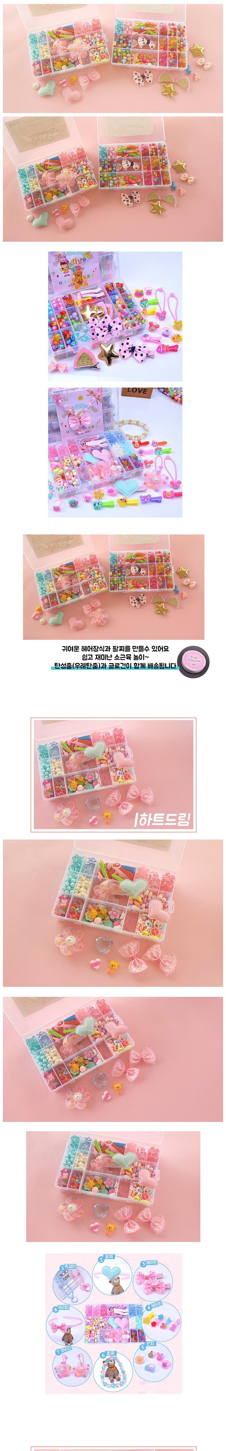 유아 어린이 비즈 팔찌 머리핀 목걸이 만들기 키즈 세트 diy 구슬 공예 재료 꿰기, [비즈세트]골드스타(탄성줄+글루건)