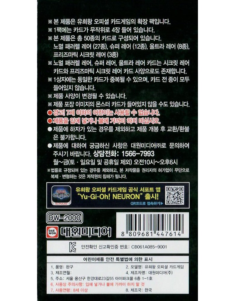 유희왕카드 프리즈마틱아트컬렉션 1박스(15팩), 대원미디어 한글판
