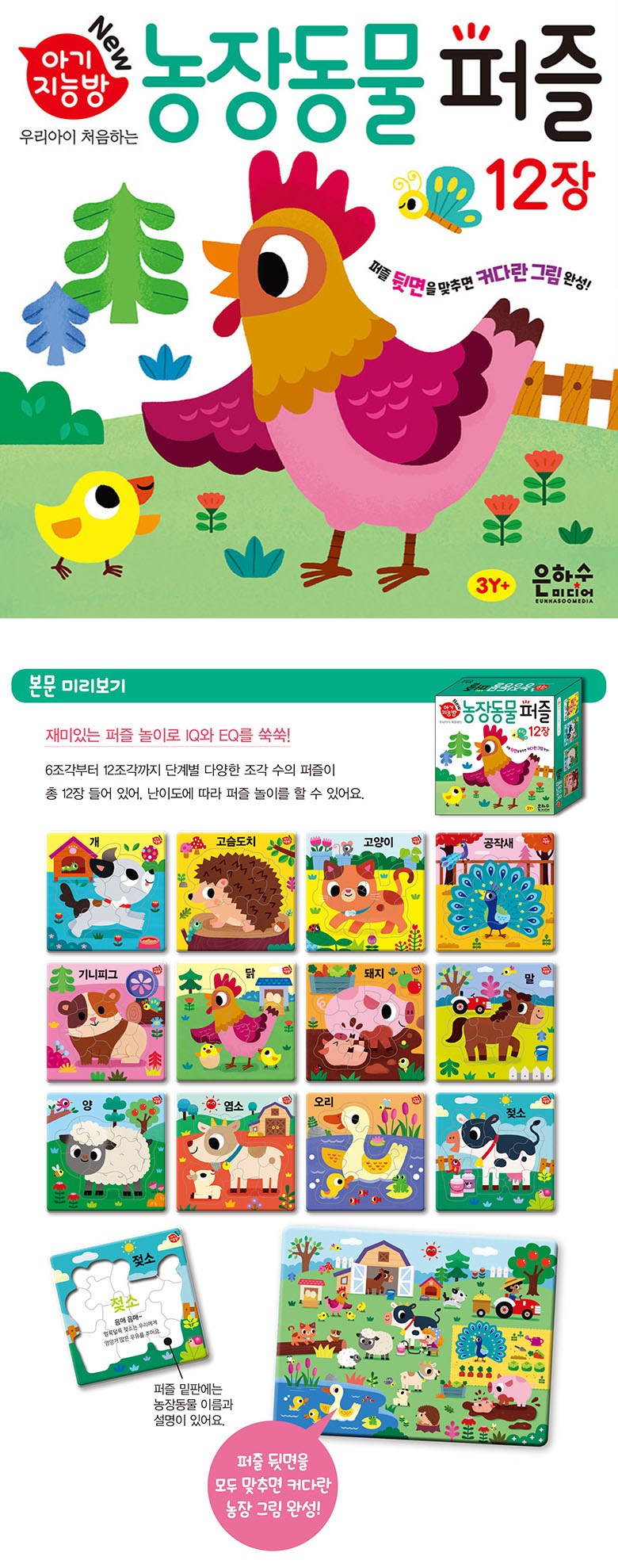 은하수미디어 아기지능방 농장 동물 판퍼즐 12종 세트, 1세트