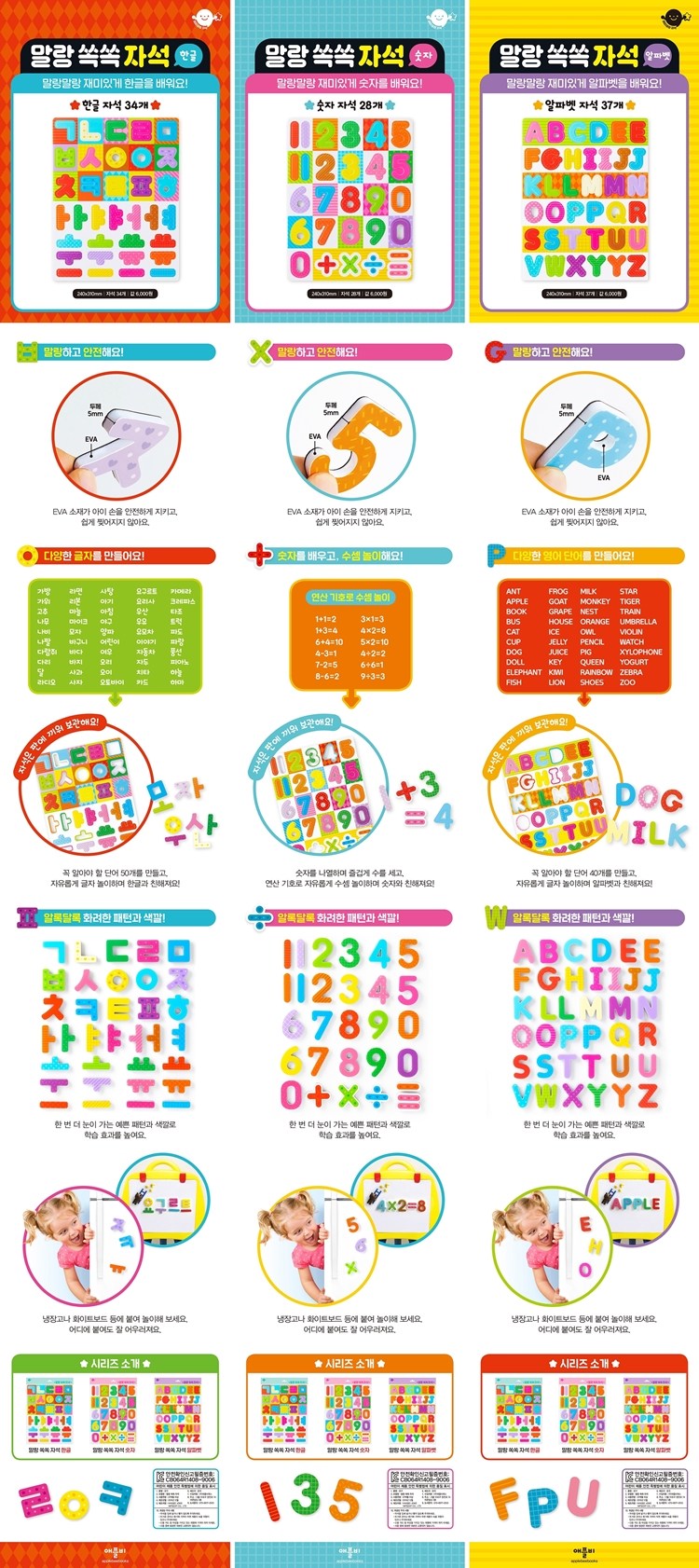 | 품명 및 모델명 | 재미재미 EVA 말랑 쏙쏙 자석 세트 : 한글+숫자+알파벳 |