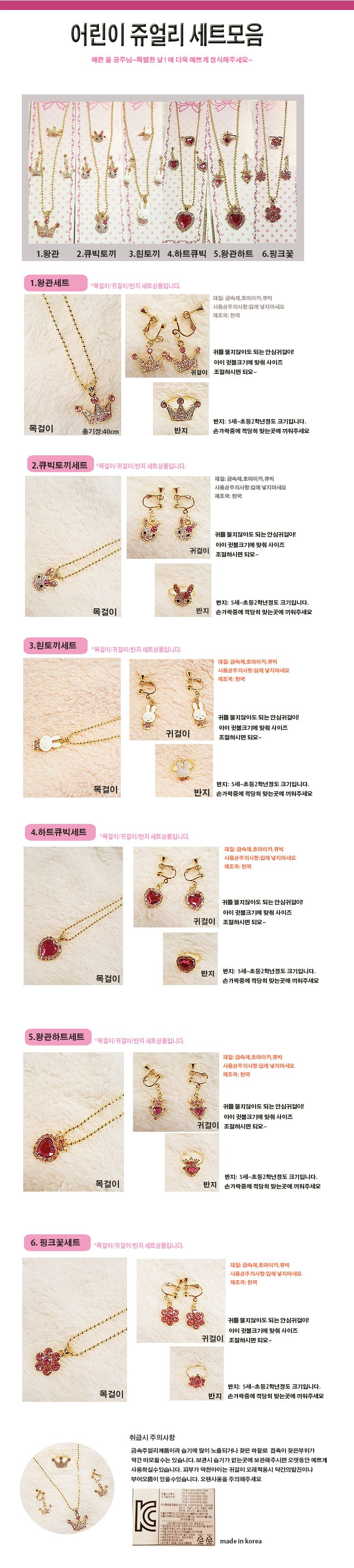 잼뽀니 어린이 큐빅목걸이 귀걸이 반지 반짝반짝 공주님되요!