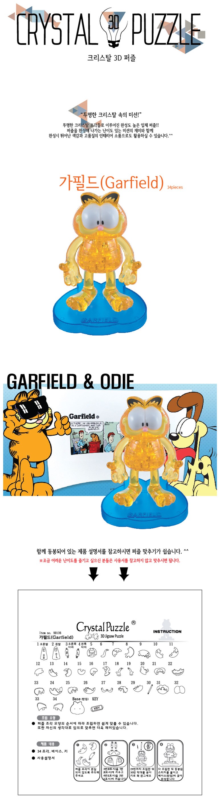 제루엘 가필드 3D 크리스탈퍼즐 JR1365, 34피스, 혼합 색상
