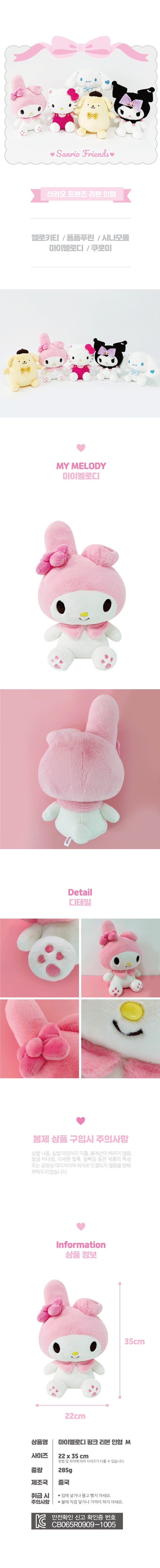 | 품명 및 모델명 | 제이콥씨앤이 마이멜로디 핑크리본 인형 M |