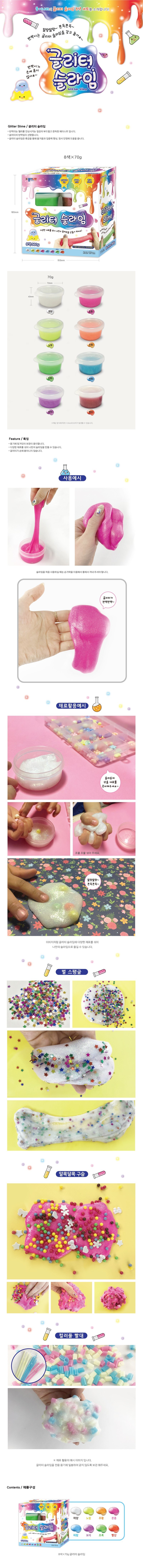 종이나라 글리터 슬라임 8색 세트, 1세트, 하양, 분홍, 노랑, 주황, 초록, 파랑, 보라, 빨강