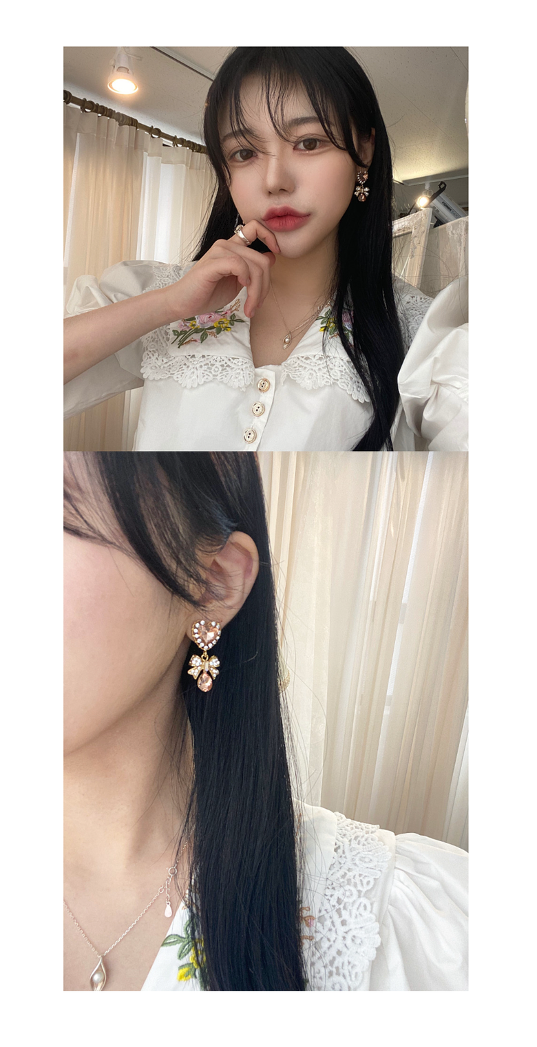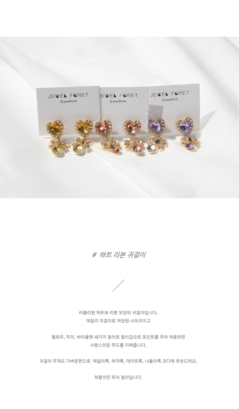 쥬얼포레 하트 리본 은침 귀찌 가능 귀안뚫는귀걸이 귀걸이