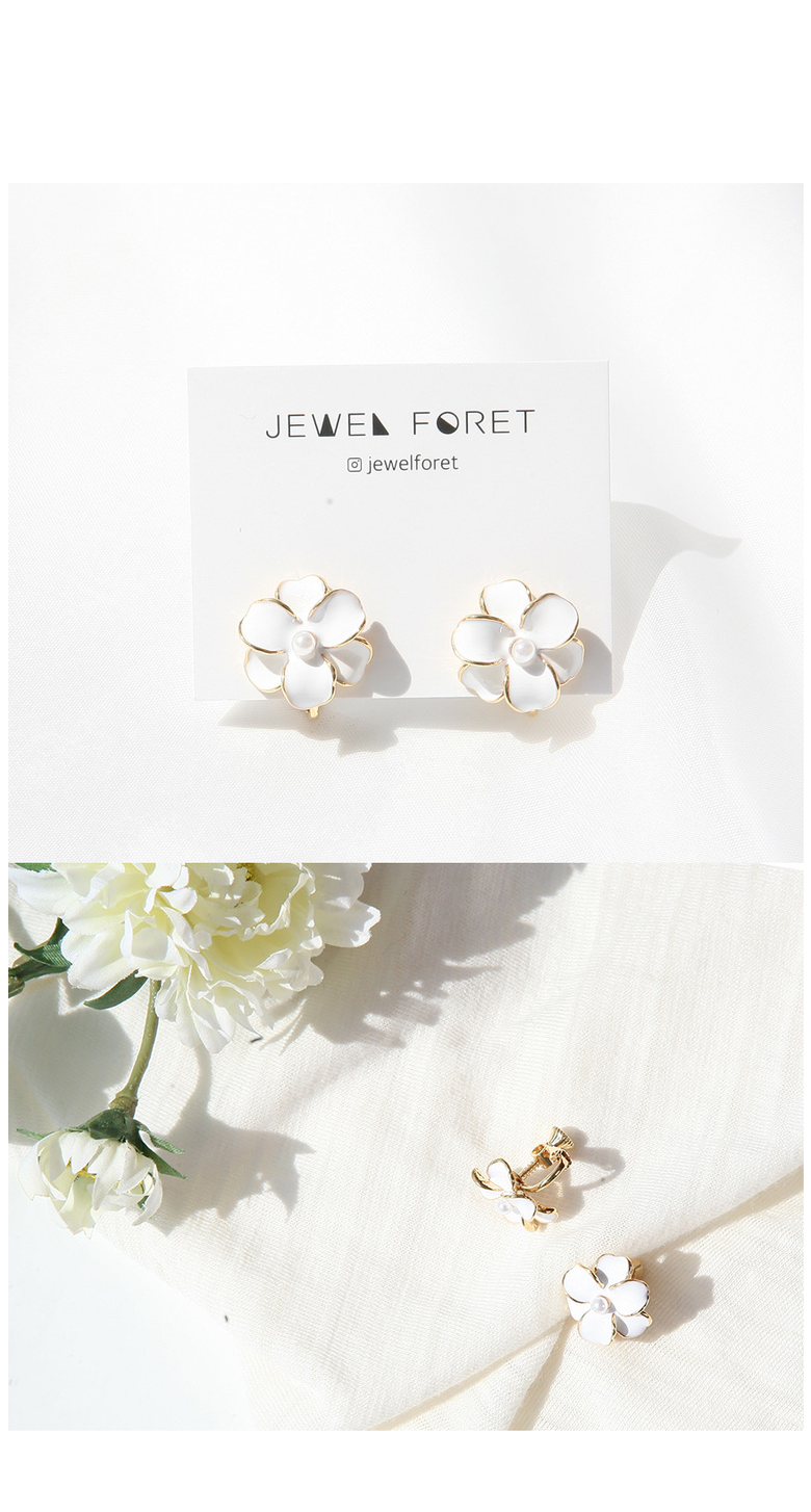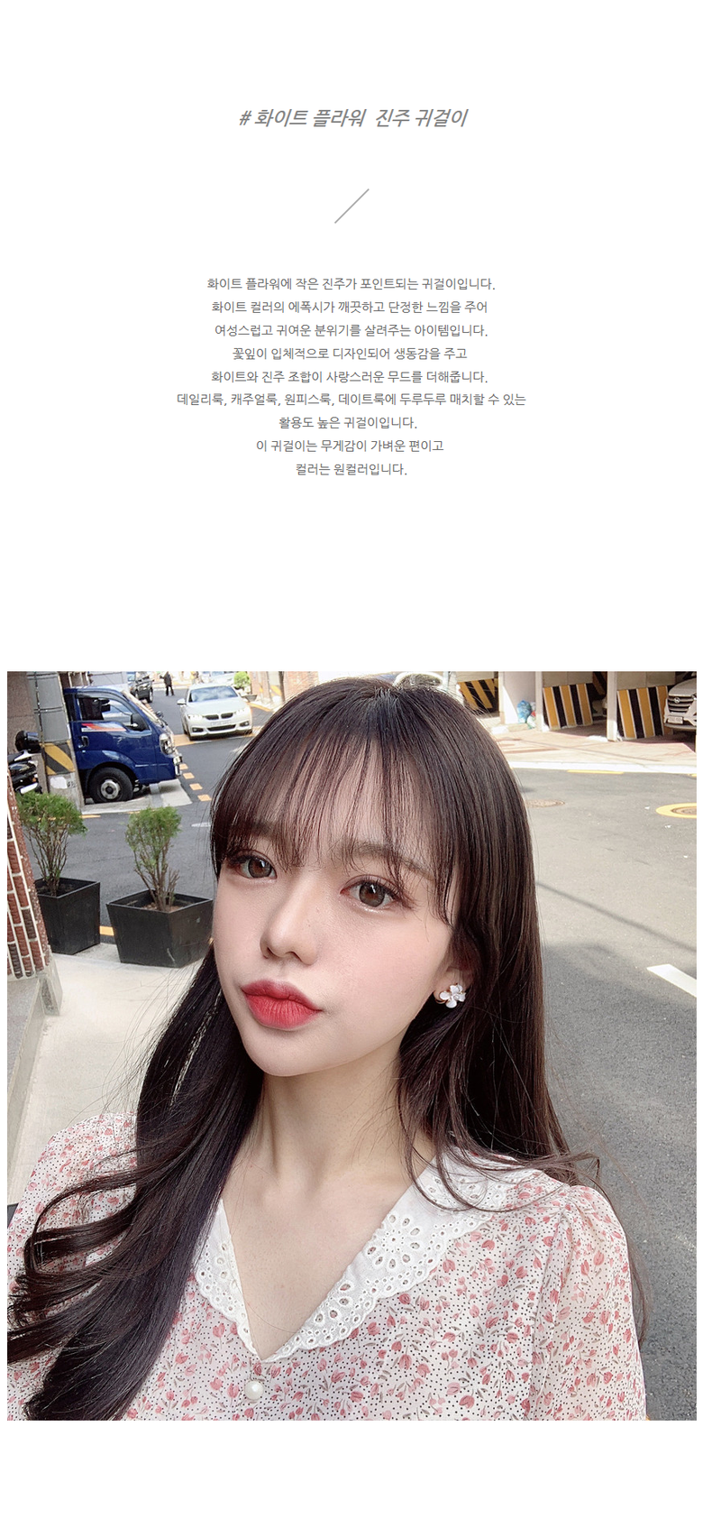 쥬얼포레 화이트 플라워 진주 꽃 귀걸이 귀찌 귀안뚫는귀걸이