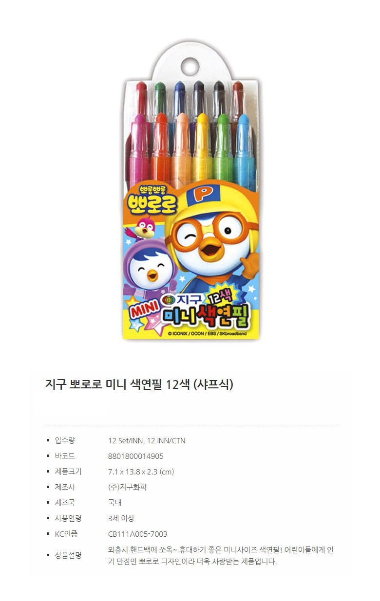 | 품명 및 모델명 | 지구 미니 색연필 |