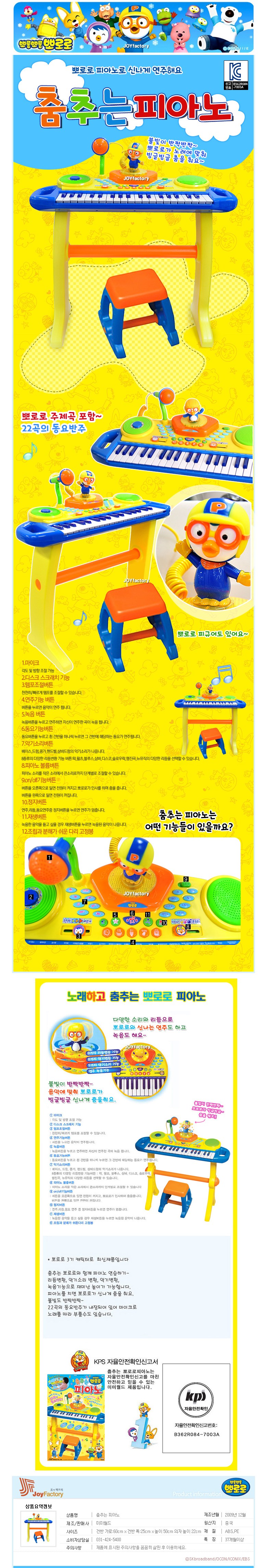 | 품명 및 모델명 | 춤추는 뽀로로 피아노 |