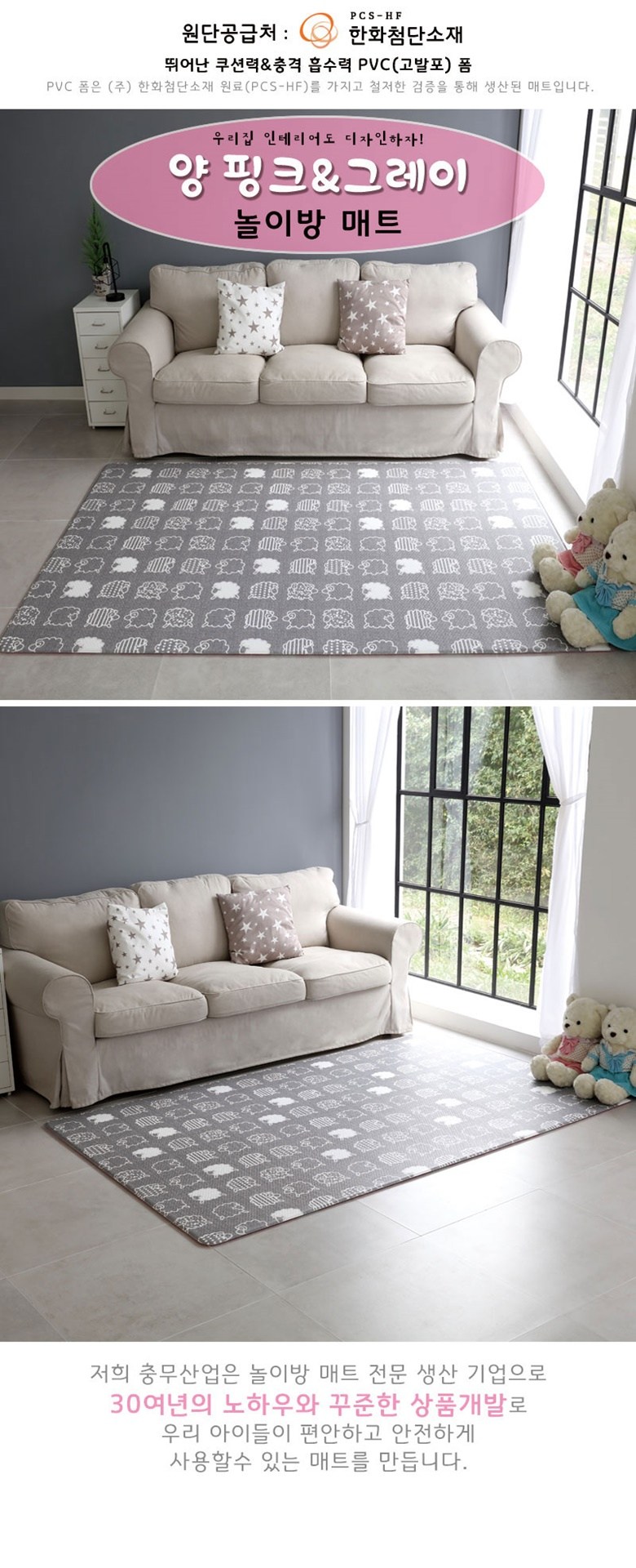 충무산업 양 핑크&그레이 놀이방 매트 양면, 혼합 색상
