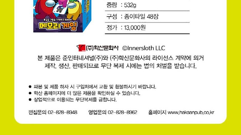 카카오프렌즈 메모리게임/보드게임 카드1개