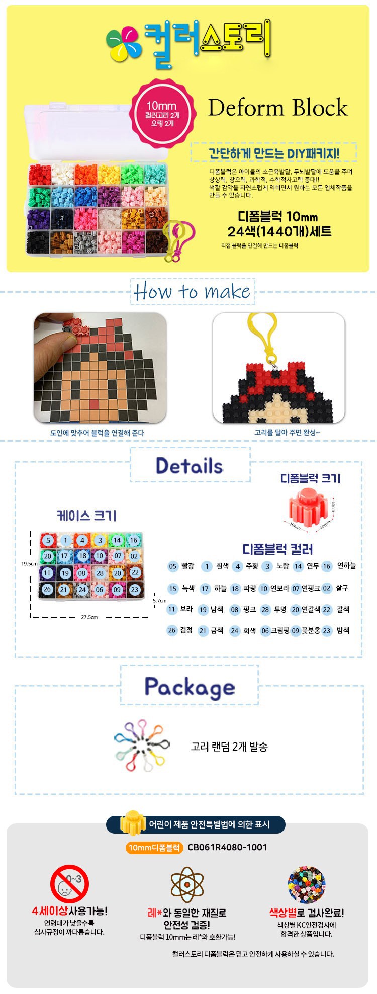 컬러스토리 디폼블럭 10mm 24종 1440p + 도안 + 고리 2p 랜덤발송 + 오링 2p 세트, 블럭(혼합색상), 고리(랜덤발송)