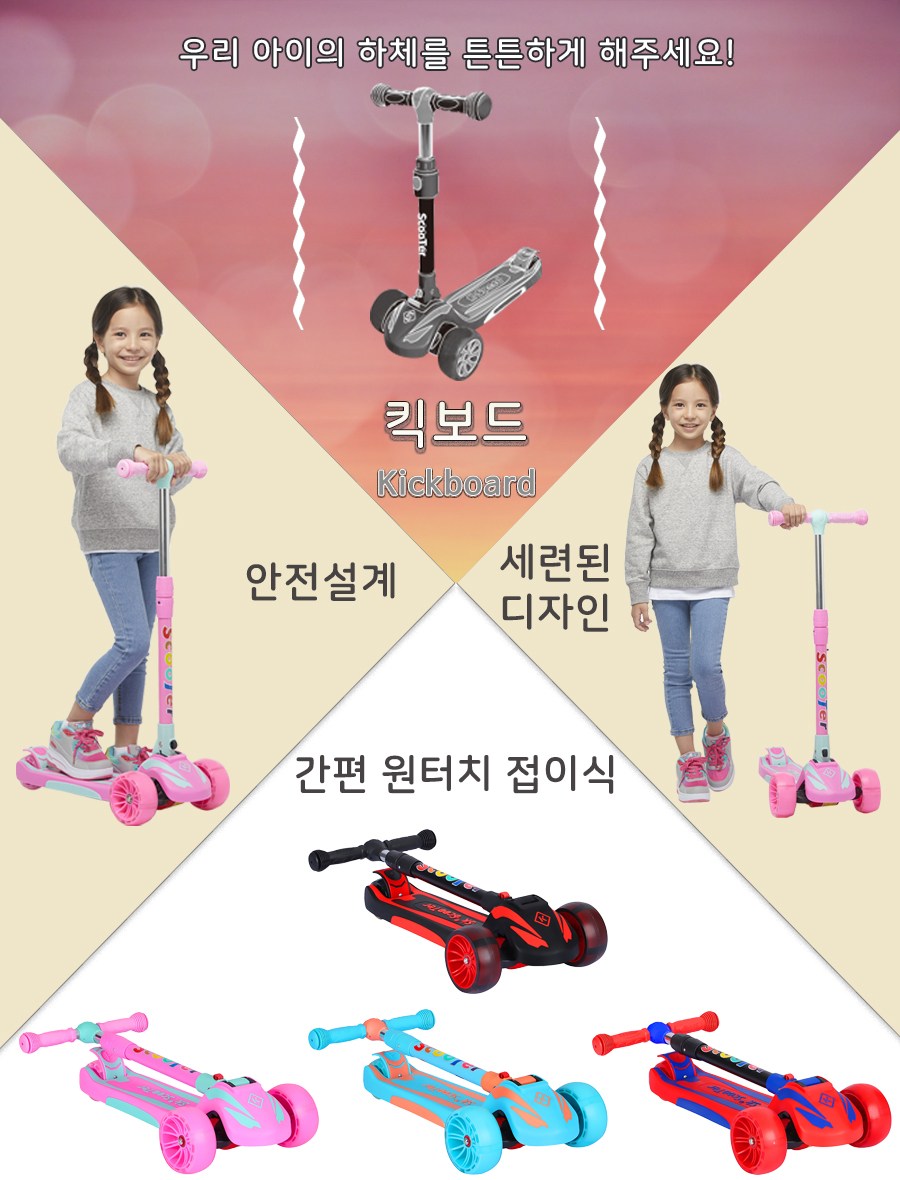 케이스피드 스마트 어린이킥보드, 레드 + 블루
