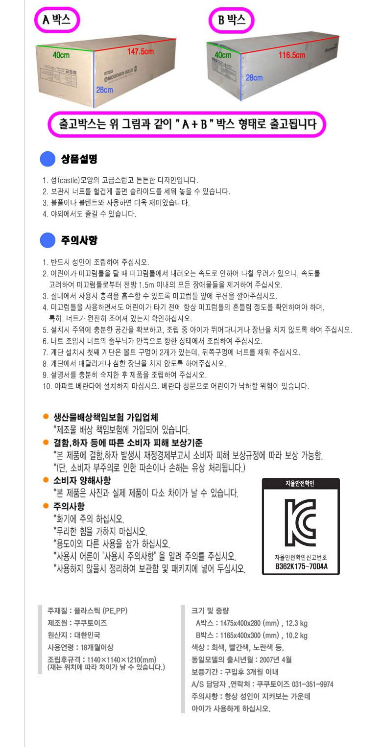 | 취급방법 및 취급시 주의사항, 안전표시 | 상세페이지참조 |
