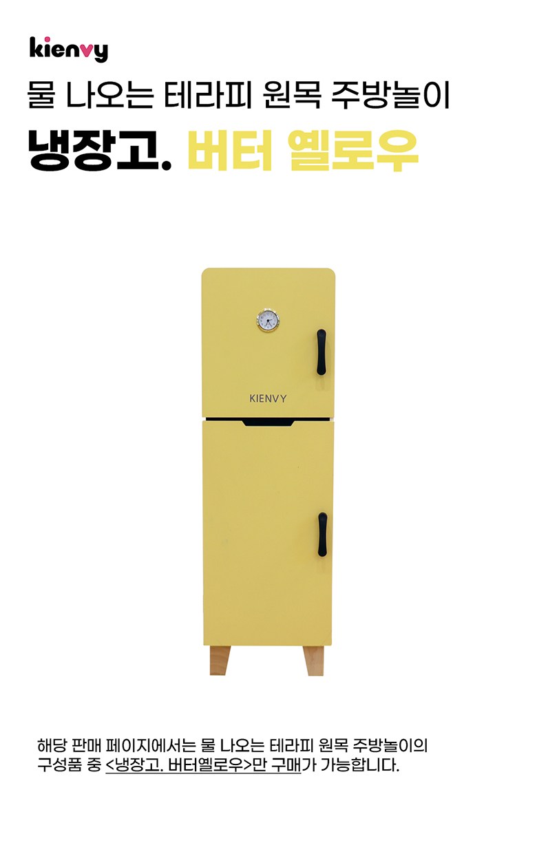 키엔비 물나오는 테라피 원목 냉장고 주방놀이, 버터옐로우
