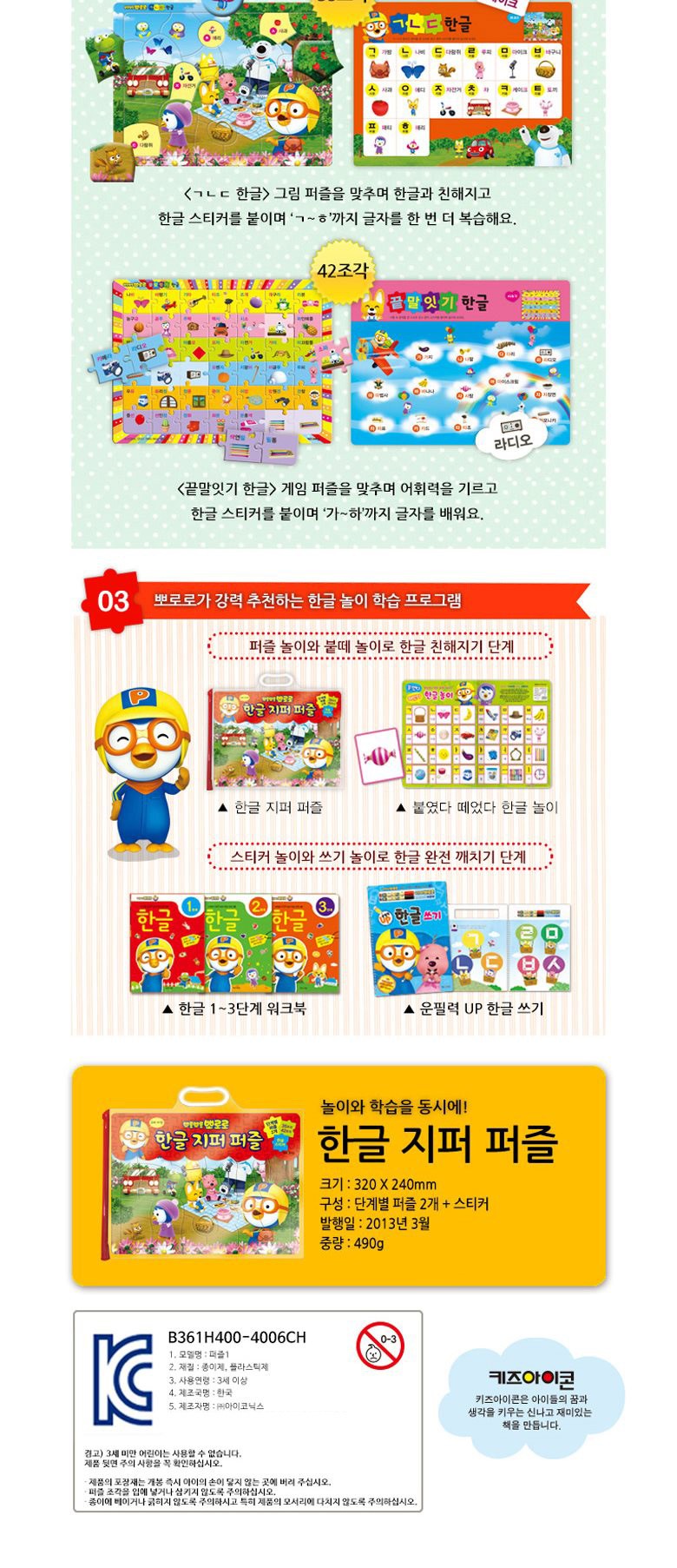 [키즈아이콘] 뽀롱뽀롱 뽀로로 한글지퍼퍼즐