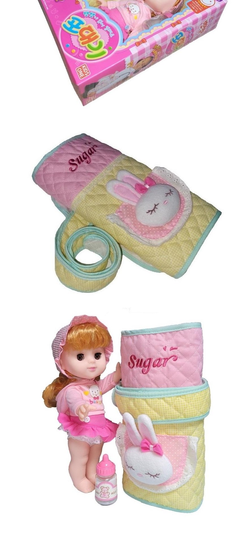 키즈원 사랑스런 뽀뽀 아기인형 포대기 세트, 혼합색상