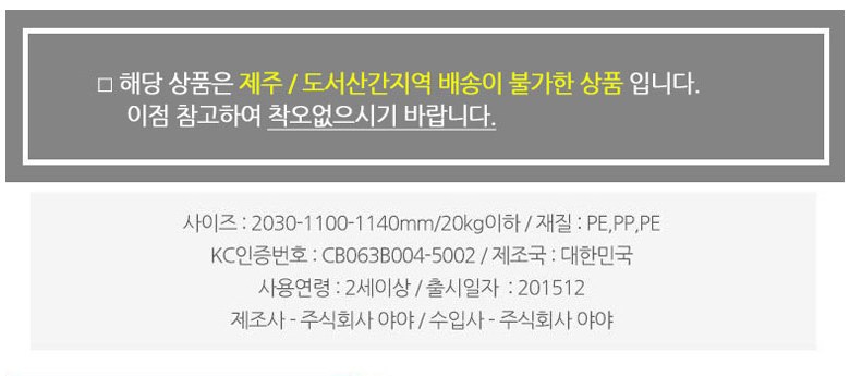 사용연령 또는 체중범위 상품 상세페이지 참조