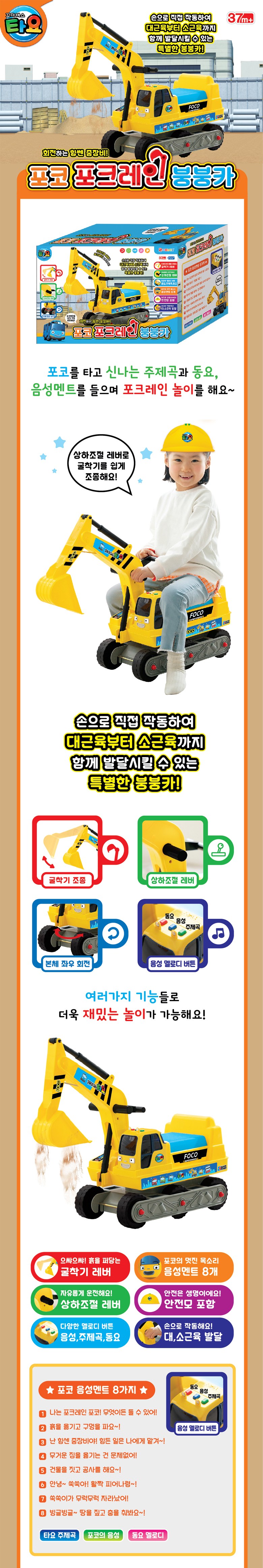 타요 포코 포크레인 붕붕카 완구, 혼합색상