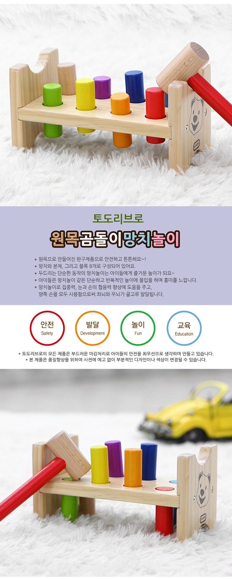 토도리브로 원목 곰돌이 망치놀이, 혼합 색상