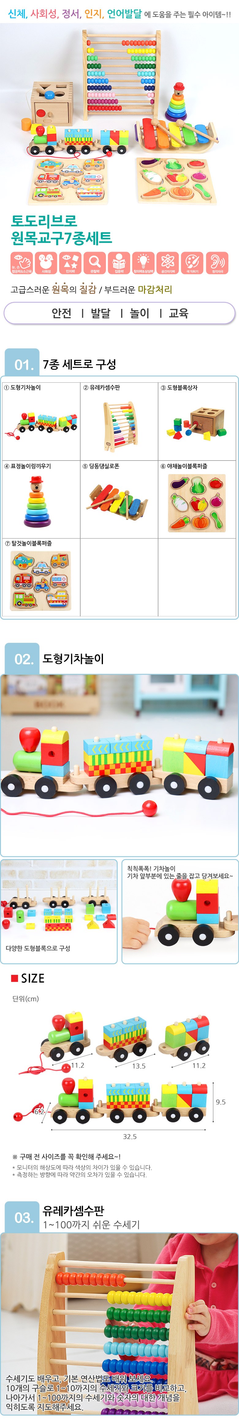 토도리브로 원목 교구 7종 세트, 혼합색상