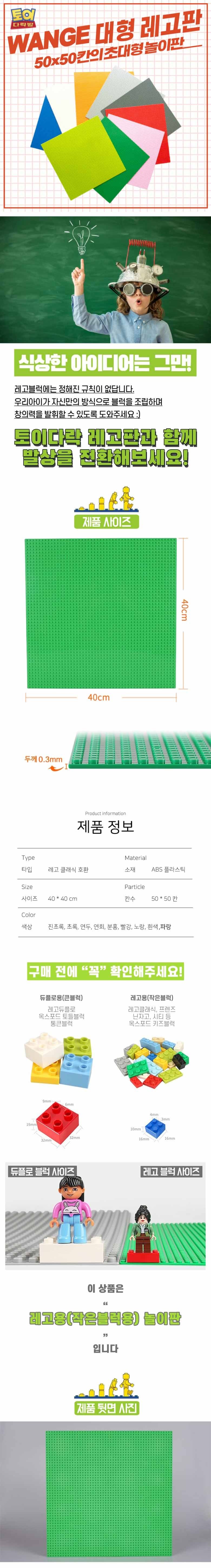 토이다락방 WANGE 레고 놀이판 50×50칸 40 x 40 cm, 연두